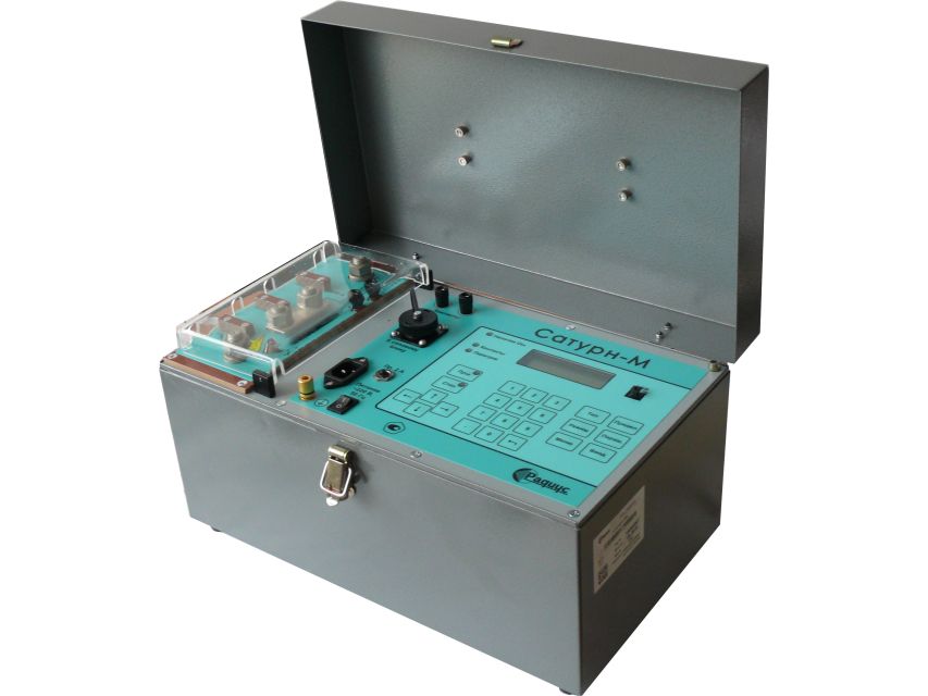 Устройство «Сатурн-М» состоит из одного блока. Устройство предназначено для проверки выключателей током до 2000 А с электромагнитными и тепловыми расцепителями. Комплект «Сатурн-М» расширяет диапазон по току прогрузки до 12 КА.