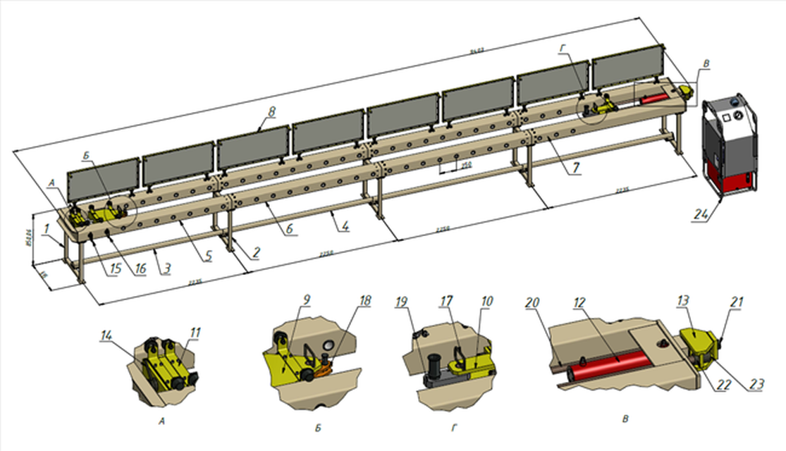 - Подвижная каретка(10) в сборе со штангами (20) и опорой(13) – 1 шт;