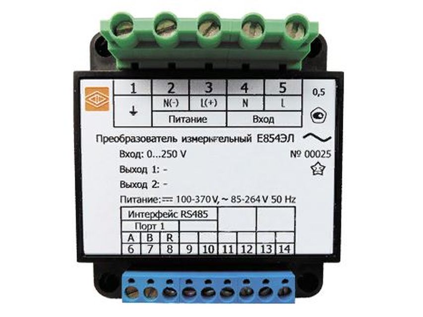 Для преобразователя, имеющего следующие характеристики: тип преобразователя Е854ЭЛ, диапазон измерения (преобразования) входного сигнала от 75 до 125 В, напряжение питания от 85 до 264 В переменного тока частотой 50 Гц, диапазон изменения выходного сигнала 0…5 мА, диапазон изменения дополнительного выходного сигнала 4…20 мА, два интерфейса RS485, для эксплуатации на морских судах