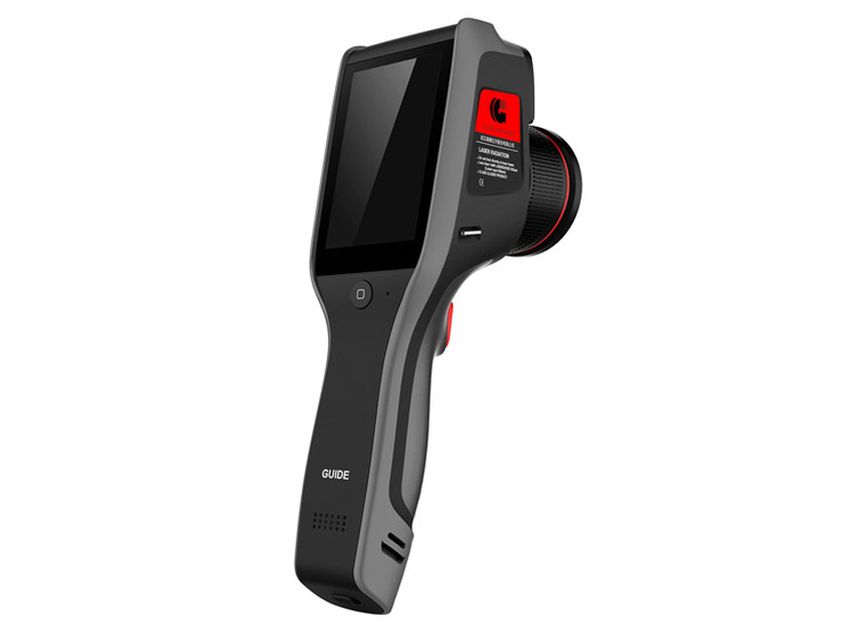 Тепловизор профессионального уровня D400 разработан для энергоаудита, измеряет температуру поверхностей в диапазоне от -20º до 650ºС (опционально до 1500ºС). Оснащен матрицей 384х288 пикселей, с чувствительностью 45мК, сменным 19 мм объективом с настраиваемым фокусом. Сенсорный дисплей с диагональю 4 дюйма. Есть встроенная цифровая камера 5 мегапикселей, вы можете получать более чёткие изображения за счёт наложения ИК и видимого изображений. Сохранять результаты измерений можно на карту памяти SD 32Гб, передавать данных и видео с температурной информацией по Wi-Fi / USB / HDMI. Тепловизор работает под управлением Android. Вес тепловизора 800 грамм.