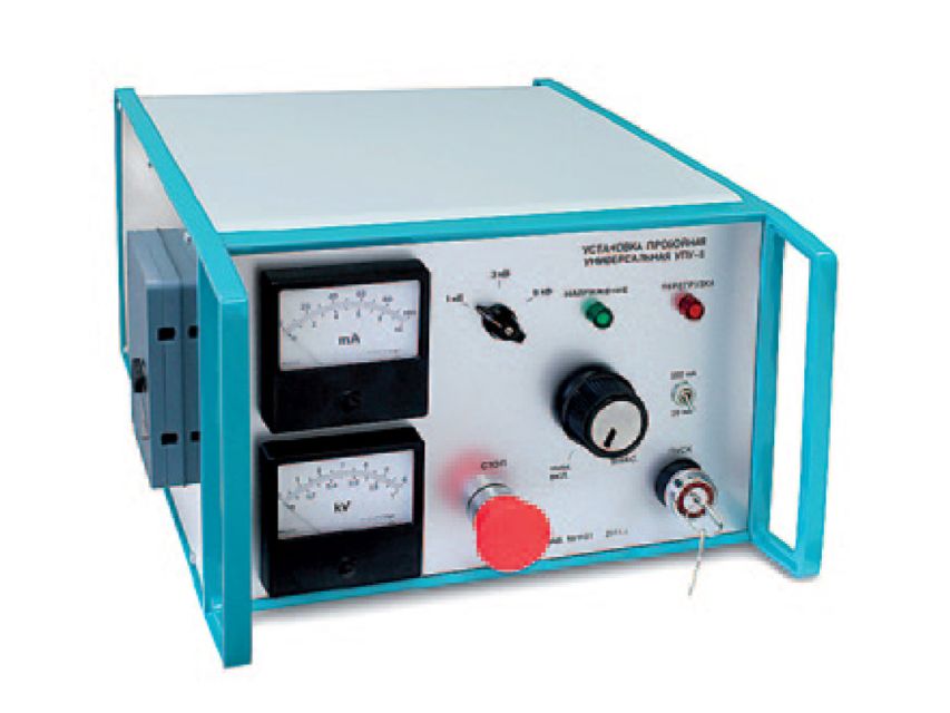 Установка пробойная универсальная УПУ-6 предназначена для испытания изоляции электротехнического оборудования и материалов переменным синусоидальным напряжением частотой 50 Гц и выпрямленным напряжением отрицательной полярности, регулируемым в пределах 0-6 кВ.