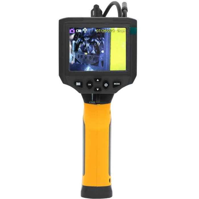 Прибор представляет собой инспекционную систему (портативный видеоэндоскоп) с функцией фото- и видеозаписи. Оператор может делать снимки (в формате JPG, до 3 МП) или видео  (в формате AVI, 720P) на SD-карту. Цветной монитор съемный - может быть вынесен  в удобное для обзора место на расстоянии до 1,5 метров от прибора. Это делает удобным наблюдение с одновременным наведением камеры на объект: оператору не нужно поворачивать тело и голову, чтобы видеть экран при повороте прибора в пространстве (при наведении камеры на объект съемки). Светодиодный фонарик под разъемом для крепления зонда - для удобства работы в плохо освещенных помещениях или в ночное время.