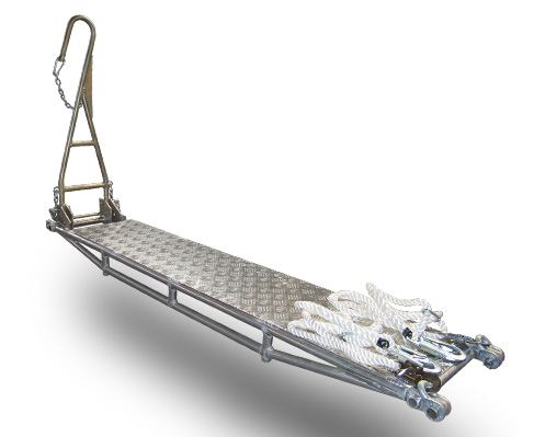 Трап предназначен для размещения трех электромонтеров с необходимым для работ инструментом при монтаже арматуры на проводах, молниезащитных тросах и самонесущих оптических кабелях ВЛ.