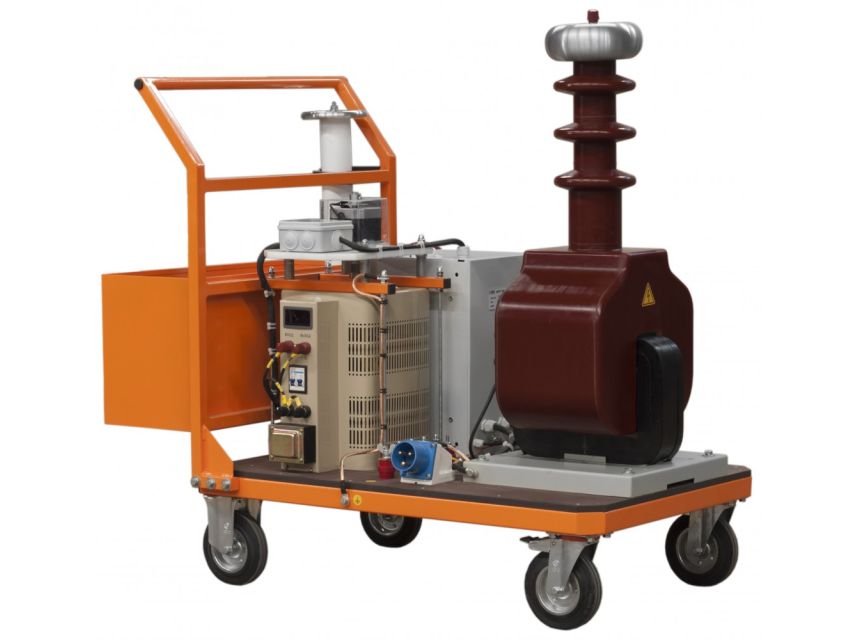 Высоковольтная испытательная установка аппарат испытания диэлектриков АИСТ 100М с "сухим" трансформатором предназначена для испытания электрооборудования высоким напряжением переменного тока промышленной частоты до 100 кВ.
